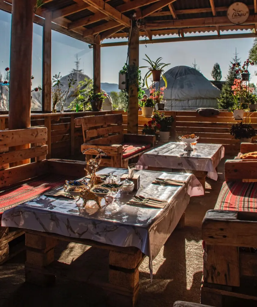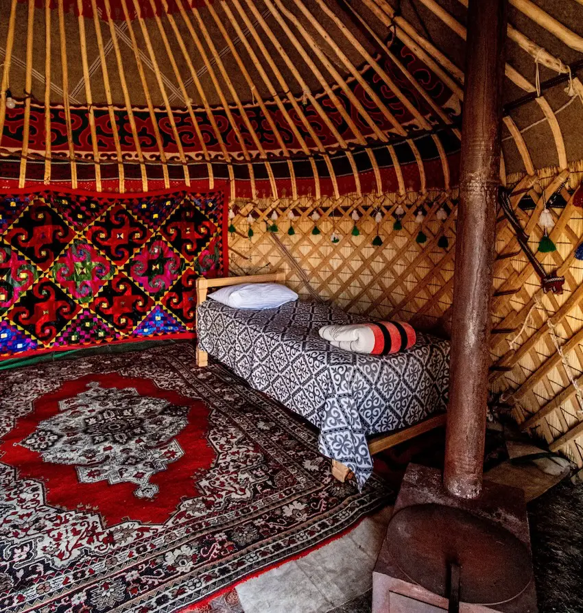During your road trip in Kyrgyzstan, you'll have the chance to stay for 9 nights in carefully selected hotels, guesthouses, and yurt camps, offering comfort, authenticity, and often located in unique and breathtaking places. (including 3 nights in a yurt camp)